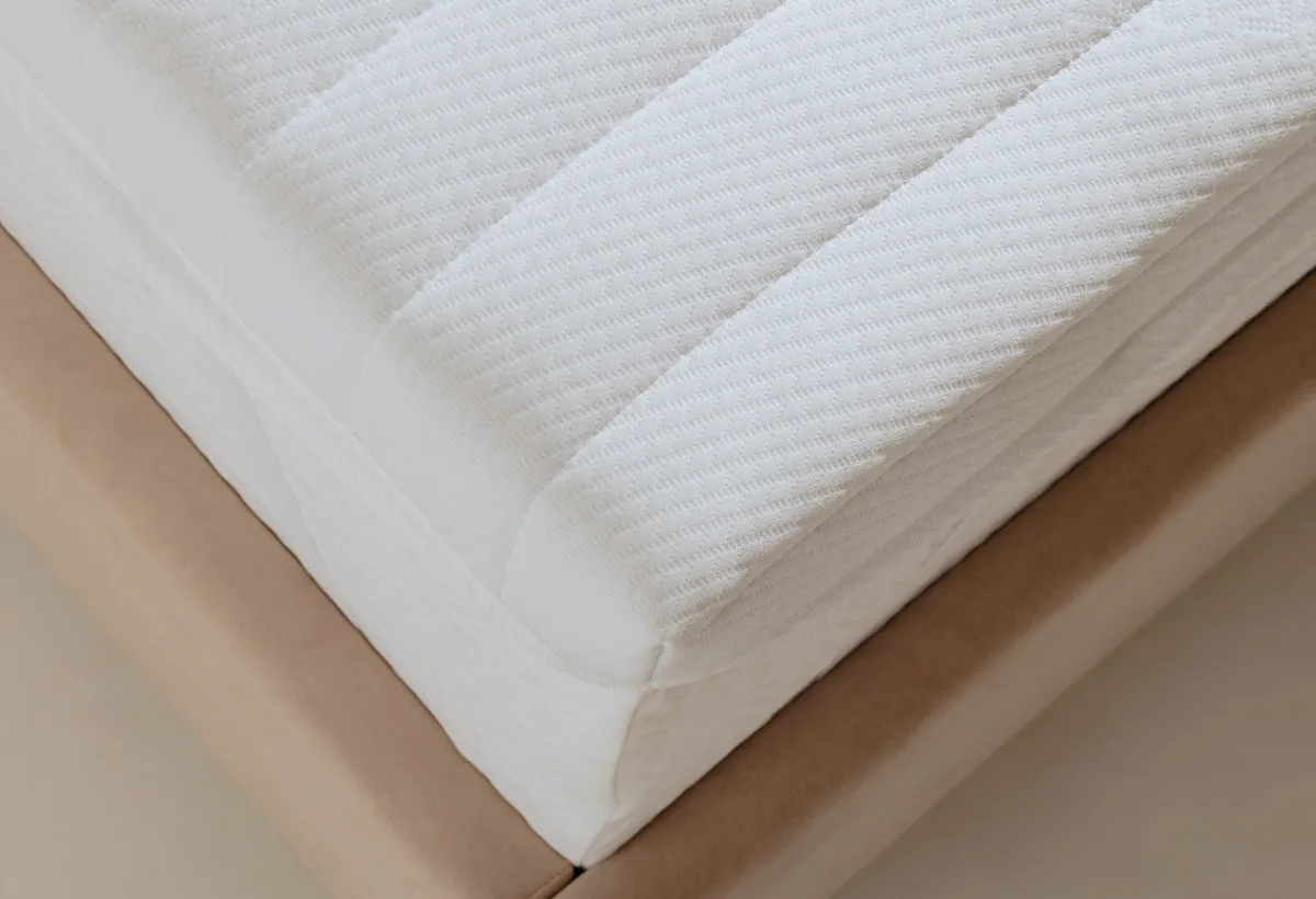 Сверху — стёганый чехол с холлофайбером. Он мягкий на ощупь и защищает основу от пыли. Чехол не требует сложного ухода, и пена внутри не сбивается.